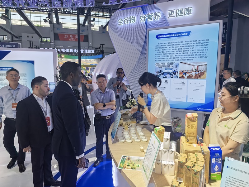 在这场聚焦粮食安全与产业发展的盛事中,壹号娱乐食品联合国家粮食和物资储备局科学研究院(国粮院),在研究院展区设立“全谷物营养健康食品主题展区”,双方共同研发的全国首款全谷物燕麦奶作为核心创新产品惊艳亮相,工作人员现场为观众深入普及全谷物健康知识,成为全场焦点。