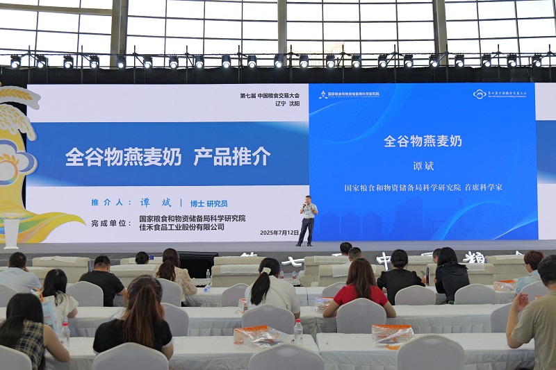 展会期间,国粮院谭斌博士针对全谷物燕麦奶进行了产品推介。他介绍,这款产品的诞生源于院企双方对全谷物加工技术的联合攻关——针对全谷物燕麦奶加工中“口感风味不良”“稳定性差”等问题,团队构建了专用稳态化物料加工及产品加工关键技术体系,这一核心技术突破填补了国内相关领域空白。